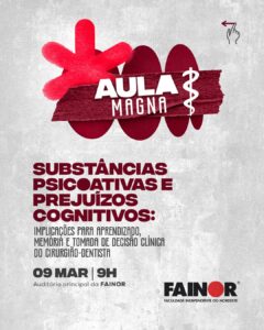 O evento acontece no dia 09 de março, às 9h, no auditório principal, e será conduzido pelo médico psiquiatra Thomás Fernandes Meira Andrade. A proposta é trazer um olhar mais atento para os prejuízos cognitivos causados por essas substâncias e como isso pode impactar diretamente a atuação do cirurgião-dentista.